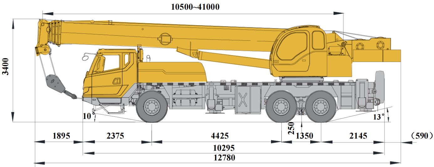 | Boom | 5-section boom with U cross-section,welding structure double-cylinder plus ropes telescoping system. Boom length:10.5m~41m. |