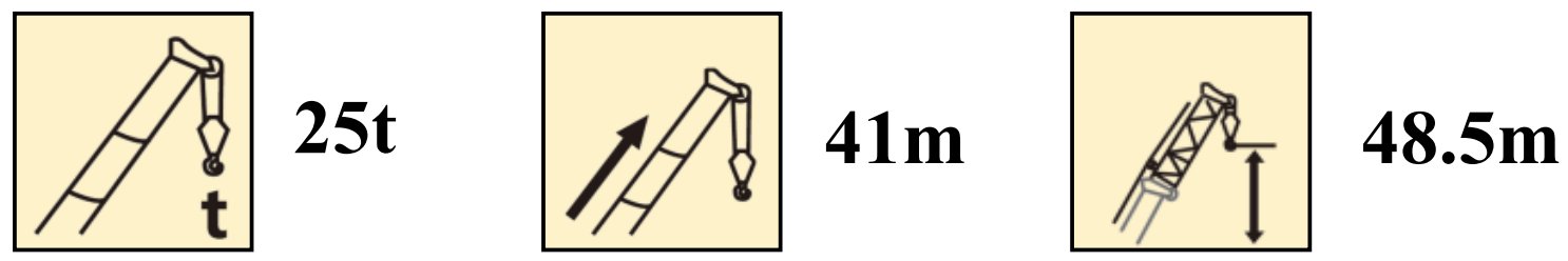 Function description:5-Section boom of 41 m, fixed jib of 8.3 m