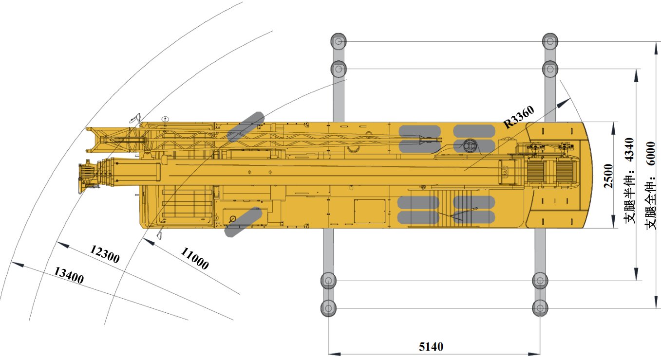 The working radius shown in the rated load charts is the radius when the load is lifted off the ground, and it is the actual value including loaded boom deflection.