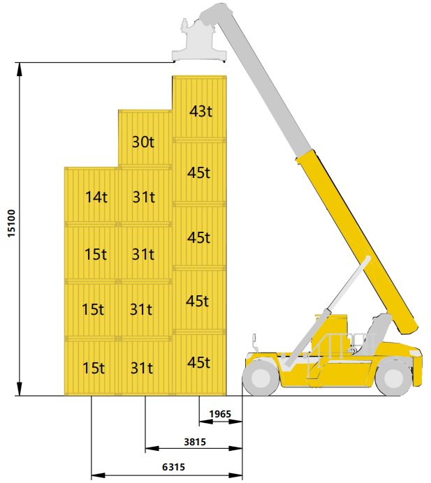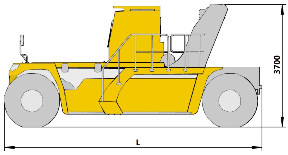 Container reach stacker belong to off-road machines. Local traffic rules and regulations must be observed. For long-distance job site transfer, use a trailer and take GVW, axle load and dimensions of the machine into consideration.