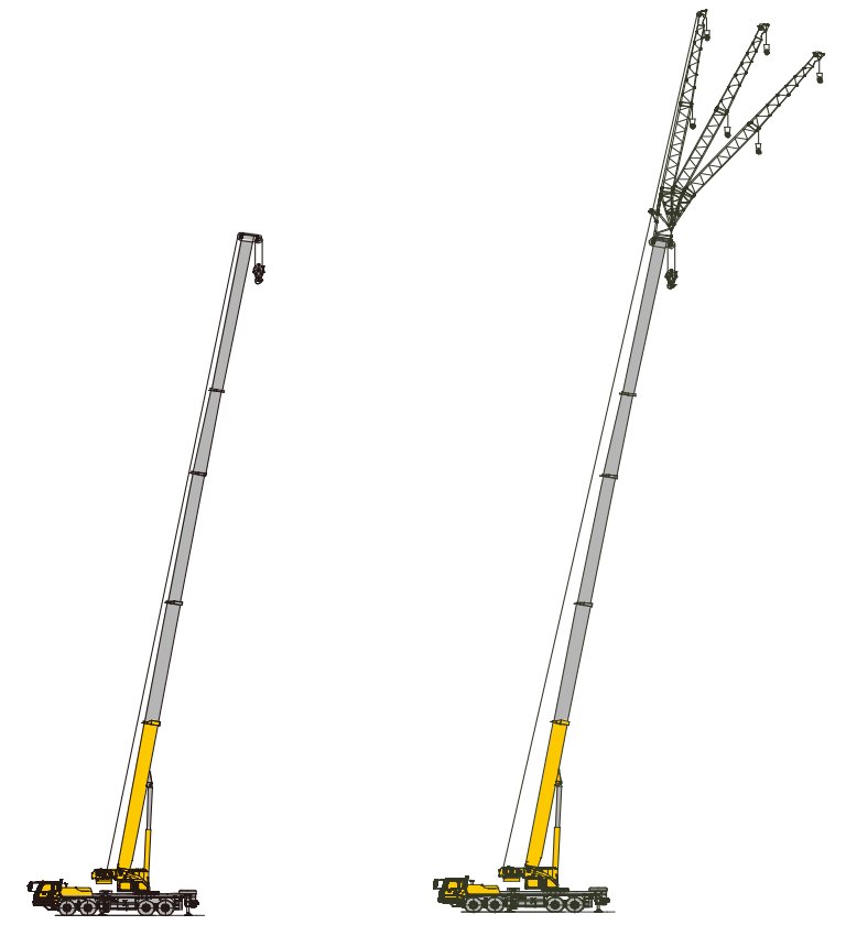 Single top:Installed at the boom top, used for single line operation. Its lifting performance is the same as that for boom, but the max. lifting load could not exceed 5.5 t.