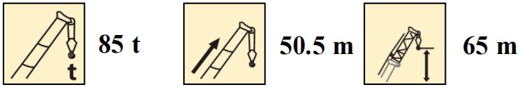 | Main performance | Max.total rated lifting capacity | t | 85 | ||