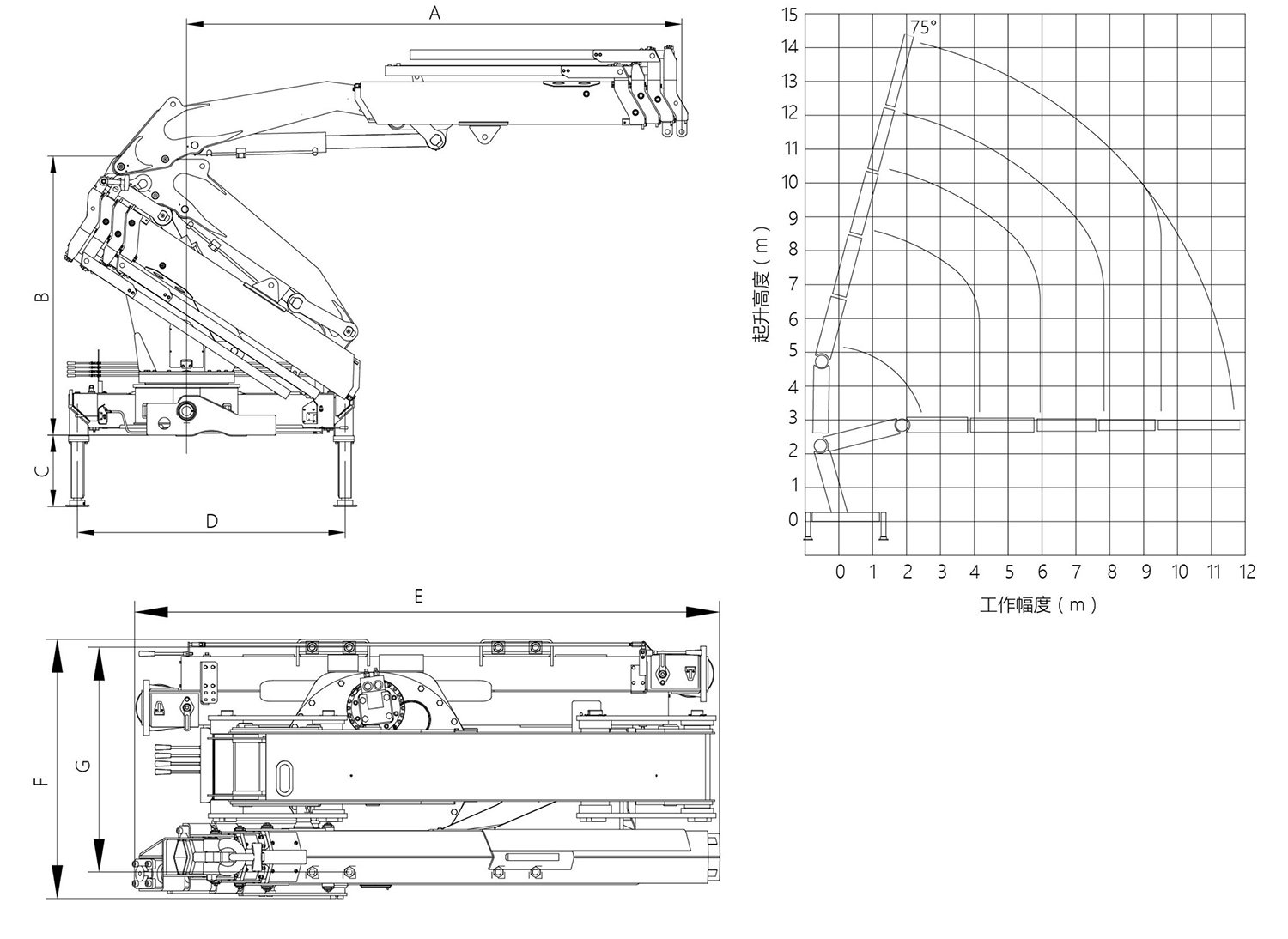 | Lifting capacity(kg) | 12000 | 6900 | 4560 | 3410 | 2650 |